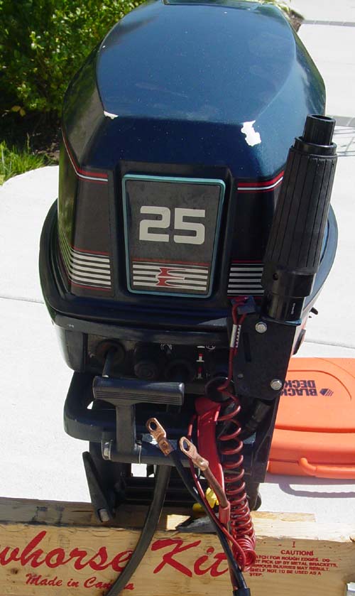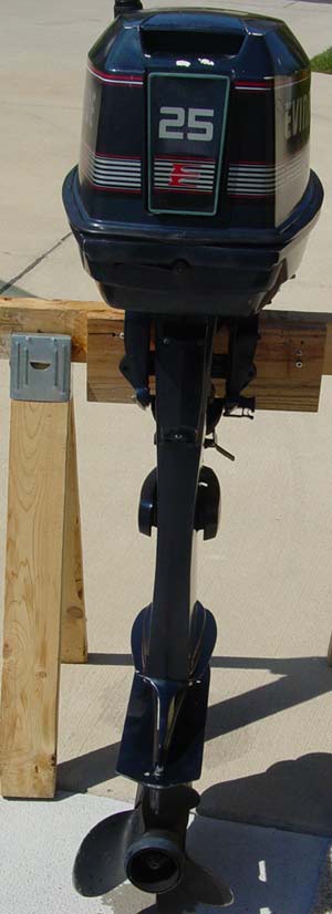 This is a 1990's 25hp long shaft Evinrude Outboard in very clean condition. This is an electric start, 20" long shaft, with a charging system. This 25 hp Evinrude has very low hours on it and was primarily used in freshwater. The motor weights 115lbs and is perfect for a small skiff. Clean 2 stroke 25 hp outboards are becoming harder and harder to find. Many poeple love these motors because they weight so little compared to a 4 stroke. This has the capabilities to convert to a remote model( additiona accessories required). This engine starts very quickly, has very strong compression (120PSI ON BOTH CYLINDERS!), and shifts into gear smoothly. Please review the photographs to see the condition of this engine. This would make a perfect outboard for a Boston Whaler type skiff, Carolina Skiff, Commercial Work Skiff, Mullet Boat, John Boat, Sailboat, Bass Boat, Poontoon, Flats Skiff, large inflatable, or any other small water craft. Very nice Evinrude Outboard........"the brand that started it all" Time to get ready for Summer fishing and boating!