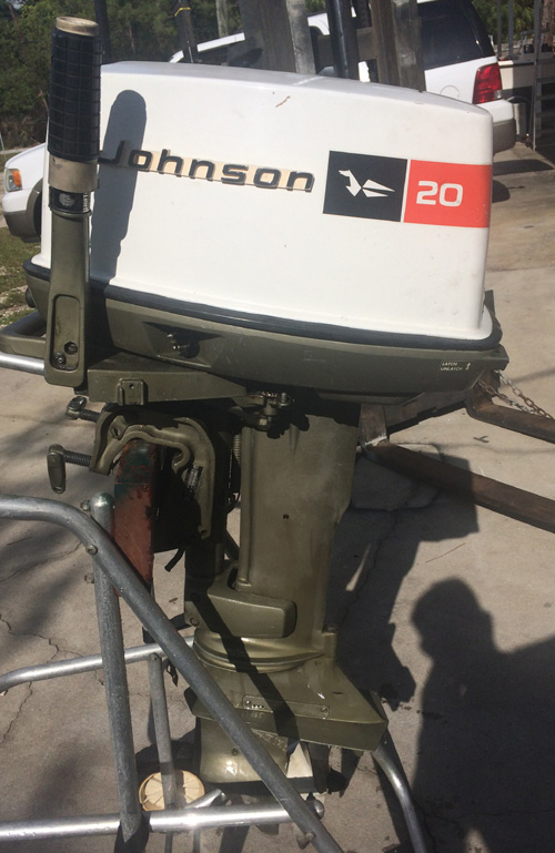 This is a great running 20 hp Johnson Outboard. This is a standard shaft "15, two-stroke, 85lbs, tiller outboard. This engine starts very quickly, has strong compression on both Cylinders, pumps water excellent, and shifts into gear smoothly. This motor has only been used on freshwater. We have boat tested this motor and it runs excellent starts on the first pull and has excellent response from the throttle......It is ready to fish!