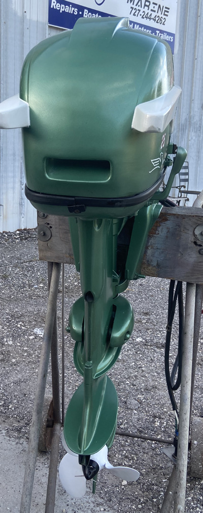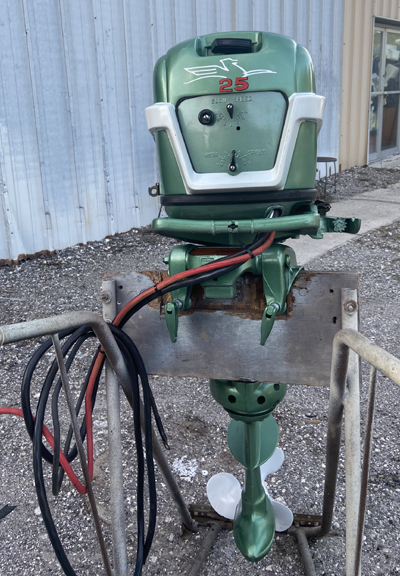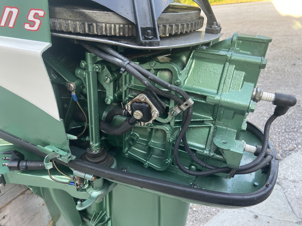 This is a 1955 25hp Johnson outboard short shaft in great running condition fully restored. This 25 hp Johnson was used in freshwater and runs great. We have fully gone through this engine and it runs excellent. This has a 15" shaft, electric start, remote style motor. Controls, harness, and cables are included. Pressurized gas tanks fully restored are available for $200. This motor has a fuel pump so a modern gas tank will work. This motor only weighs 135lbs, the weight of the average 25 hp today. If you are in the market for a 25-40hp outboard this is the motor! This is a 2 stroke, 2 cylinder outboard with forward-Neutral-Reverse. This Johnson 25hp will make a perfect outboard for a Vintage wooden boat, Boston Whaler type skiff, John Boat, Sailboat, Bass Boat, Gheenoe, Portable Boat, Poontoon, Flats Skiff, large inflatable, or any other small water craft. Please look at detailed pictures to get an accurate description of detail.