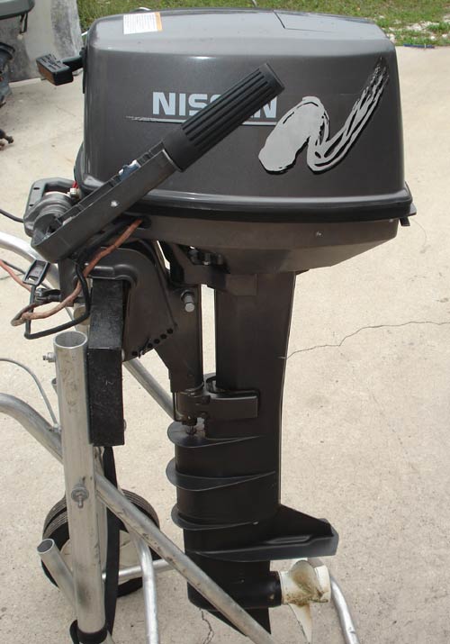 This is a great running 8 hp Long shaft Nissan 2003 outboard boat motor with an electric starter and battery charger. These are very popular outboards because they weigh around 60lbs and are very powerful. We have fully boat tested this motor and it runs great. This engine is a 20" long shaft which is ideal for most sailboats or to use as a kicker motor. Being that it is a light weight outboard it makes a great kicker motor. This Nissan 8 hp long shaft is a 2 stroke outboard.