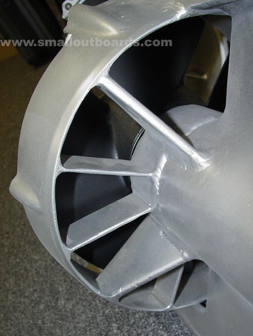 Pump-Jet lower units are designed provide a safe, strong performing, and reliable alternative to standard props. These lower units will fit Johnson/Evinrude 20-35hp outboards that have thru-hub exhaust and the gear shift connection contained within the water intake screen ( OMC outboards made from the early 1980's-today. Use 1992 as a cross reference). The gears and housing are the same as a standard lower unit with the exception of the rotor device and casing. As you can see from the photos below water is redirected and funneled from the rotor blade into a narrowing opening towards the back of the casing. AFA Marine has boat tested these lower unit devices and we were very impressed with the performance. We noticed improved acceleration and turning ability with this device. If you are looking to convert your Johnson/Evinrude 20-35hp outboard motor to a Pump Jet system this product is for you. All that is needed is to remove your existing lower unit and replace it with this one. The gears, shift rod connection, shaft, water tube, and bolt configuration are the same.