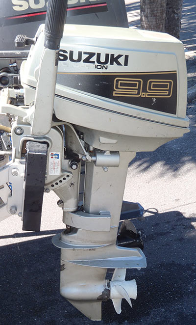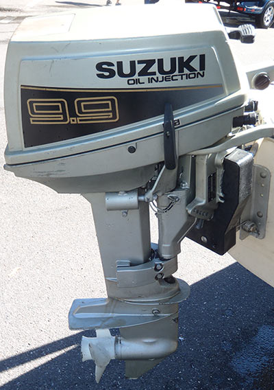 Very strong running and clean Suzuki 9.9 hp Outboard Boat motor with great compression. This is a very smooth 2 cylinder outboard motor. If you are in the market for a 9.9hp or a 15hp outboard motor, you will find that this motor should deliver sufficient power for your needs. In a comparison of various 9.9/15hp outboard motor brands that we test ran, this motor delivered the most power and torque. This motor is two-stroke, 15" Short Shaft, 2 cylinder, and weighs 79lbs. Suzuki outboard motors have of the best engineering in the marine industry. They are considered by many boaters to be the most powerful engines for their weight to horsepower ratio. This motor makes a perfect engine for a Jon Boat, Duck Boat, Gheenoe, Inflatable, Avon, Zodiac, Kicker Use, Sail boat Use, Use it as a troller for lake trout, or a back up emergency. The motor condition is near perfect including the inside which looks brand new.